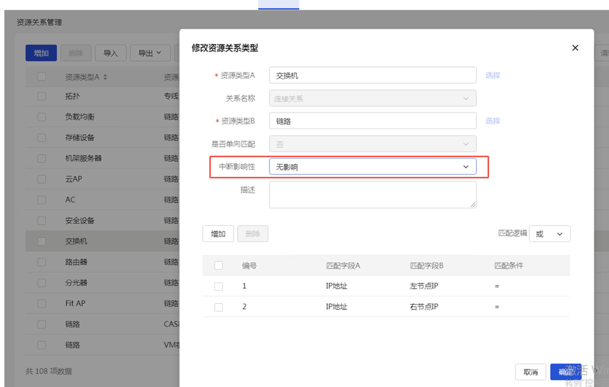 根据联机帮助描述, 需要先配置CMDB的中断影响, 配置页面 : 资源-资源关系管理 ,修改“中断影响性”这项, 如改为A、B相互影响