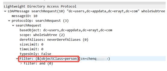 3、通过抓包看,AC上配置的objectClass是person。