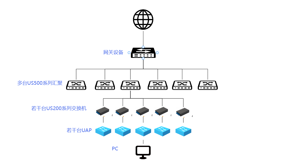 某局点使用vlan100进行管理交换机US200,且UAP,US500和US200的管理vlan都不相同,配置好管理vlan后再将设备添加上云