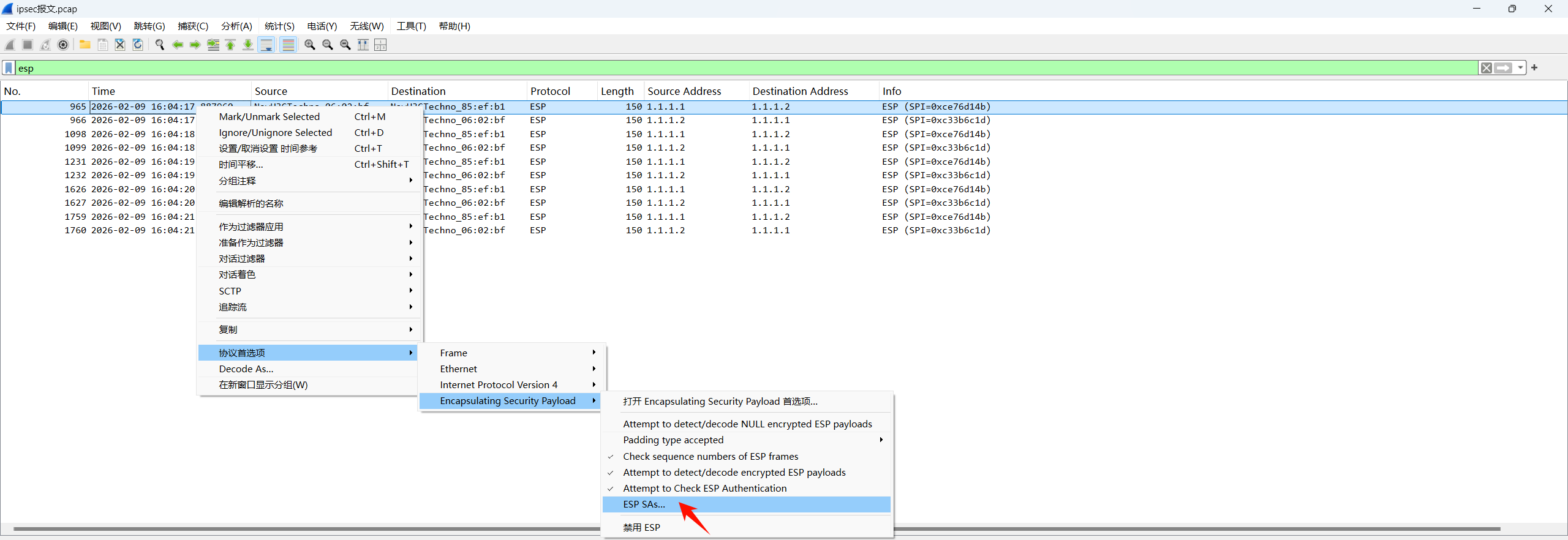 1、报文右键进入ESP SA