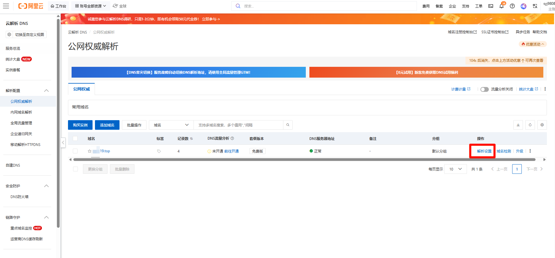 点击域名解析,如果你没有这个域名与 网站这个标签的话,说明还有购买域名