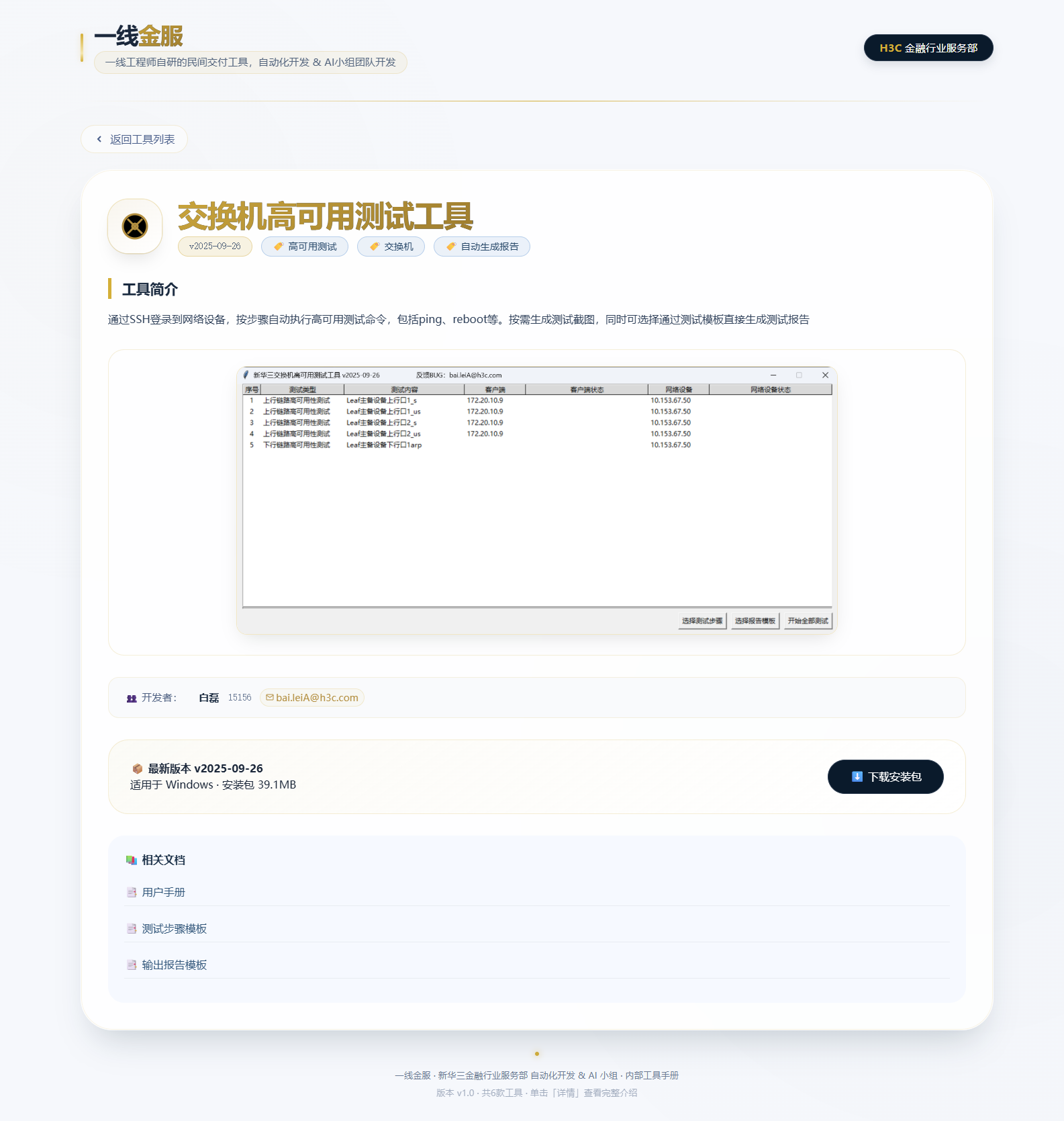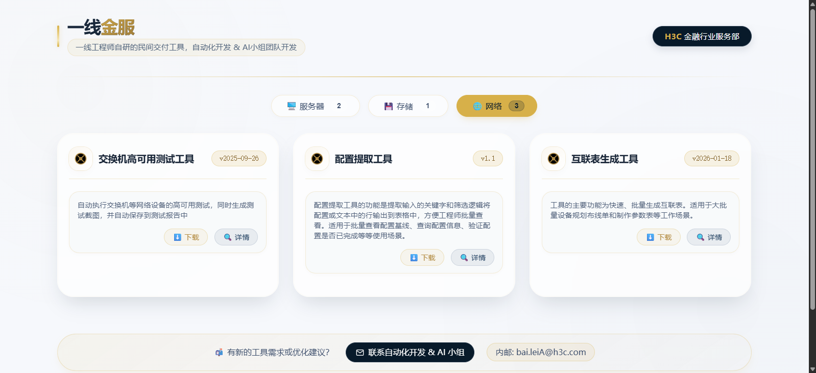 一线金服工具箱,由金融行业服务部一线工程师开发的ICT交付工具,包含开局、运维等使用场景。工具箱按季度发布更新。