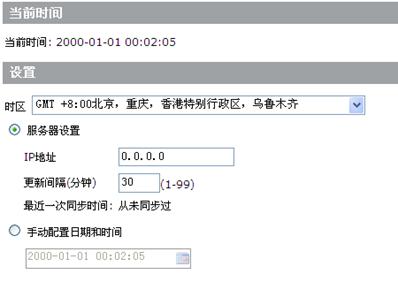 l 选择时区,单击“服务器设置”单选按钮,并指定相应的NTP服务器IP地址,单击<确定>按钮生效 |