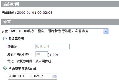 l 选择时区,单击“手工配置日期和时间”单选按钮,设置具体的时间参数,单击<确定>按钮生效 |