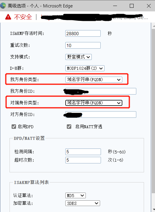 [Isamp_Server]野蛮模式身份载荷类型不匹配,对方设置的是[ID_FQDN],我方要求的是[ID_USER_FQDN].