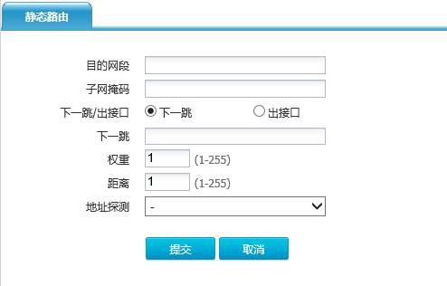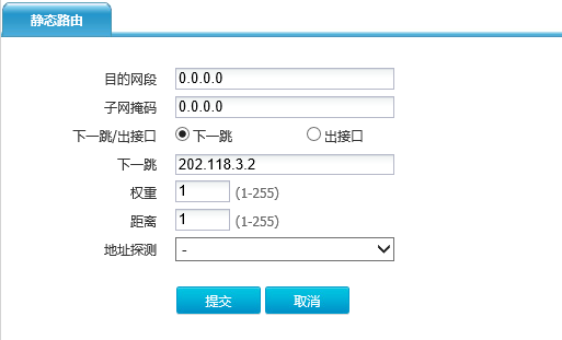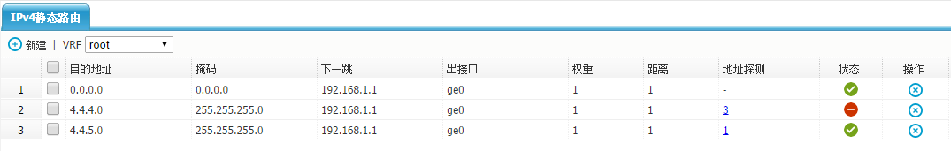 地址探测 | 和静态路由联动的地址探测,如果已经配置和探测联动,点击地址探测名称可以修改和路由联动的地址探测。 |
