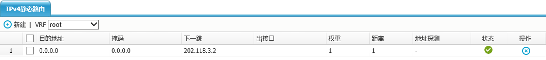 S>* 0.0.0.0/0 [1/0] via 202.118.3.2 weight 1, ge0