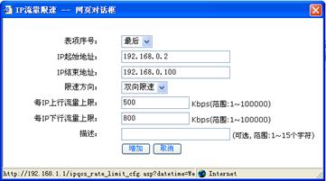 · 添加限速规则(单击<新增>按钮,在弹出的对话框中设置限速规则,单击<增加>按钮完成操作) |