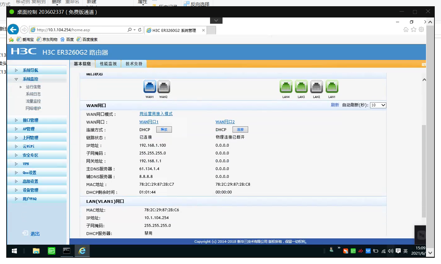 主网线从H3C路由器WAN口上拔下来插在电脑上是可以自动获取上网