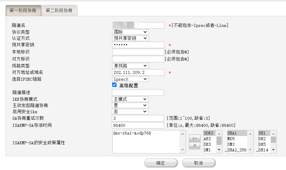 4、检查ipsec proposal(v5平台) /ipsec  transform-set(v7平台)参数两端是否一致(封装模式、安全协议、验证算法、加密算法)