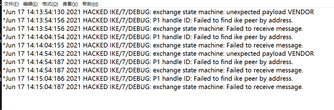 H3C F100,软件版本V5.2,与天融信VPN始终建立不起来第一阶段协商,debug信息及配置信息在附件中,求各位大神帮忙分析一下原因。