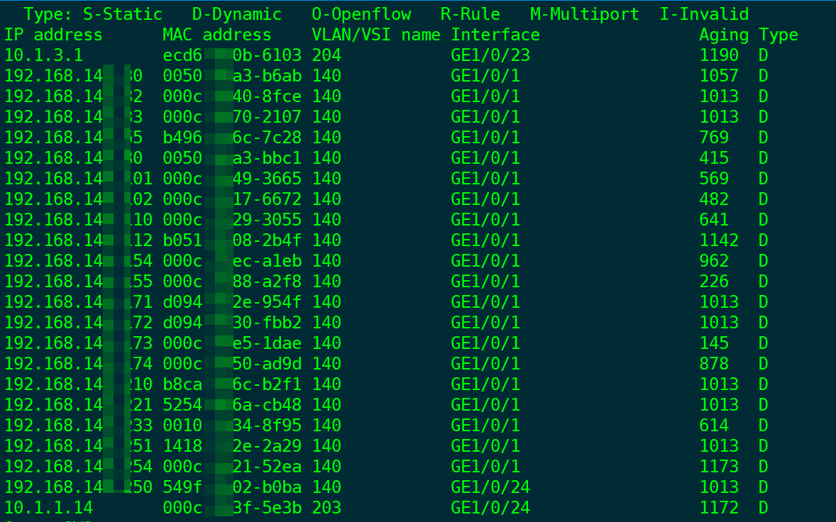 2. 通过查询表hh3cVlanInterfaceTable 获取到字段hh3cVlanInterfaceID(1.3.6.1.4.1.25506.8.35.2.1.2.1.1) [关联查询ipNetToMediaIdex == hh3cVlanInterfaceIfIndex]