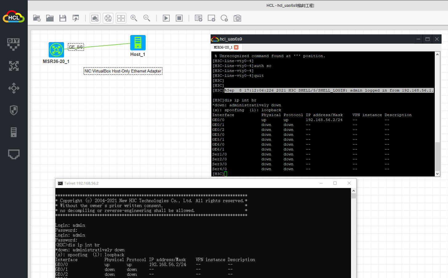 请问如何用本地TELNET登录HCL中的路由器?