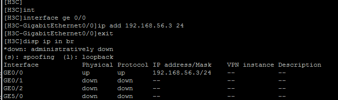 已在GE 0/0 上配置IP地址 192.168.56.3