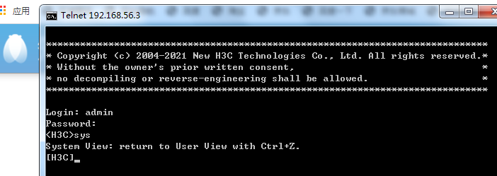 启用TELNET功能(telnet server enable)