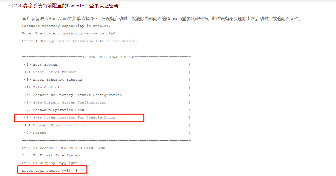 C.2.3 清除系统当前配置的Console口登录认证密码