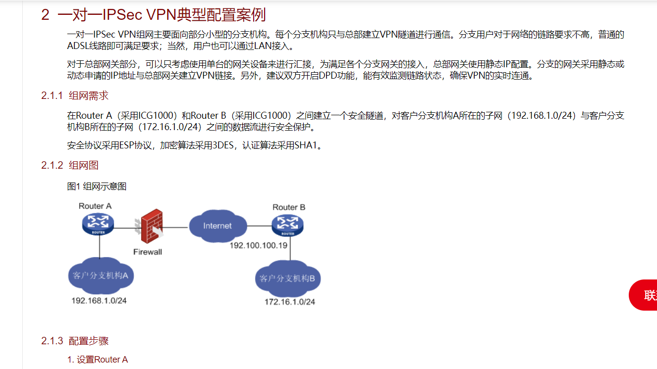 以下是IPSEC VPN的配置举例,请参考: