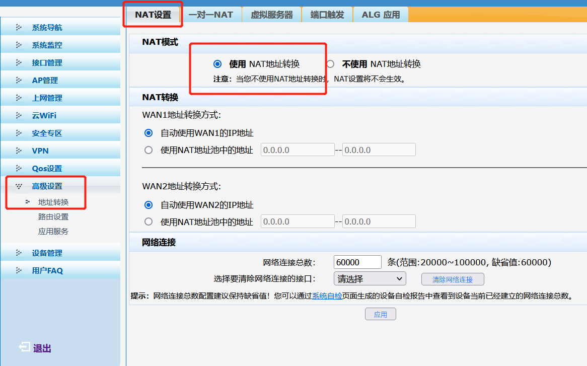 检查一下nat 配置和路由配置,看下WAN口的网关填每填写