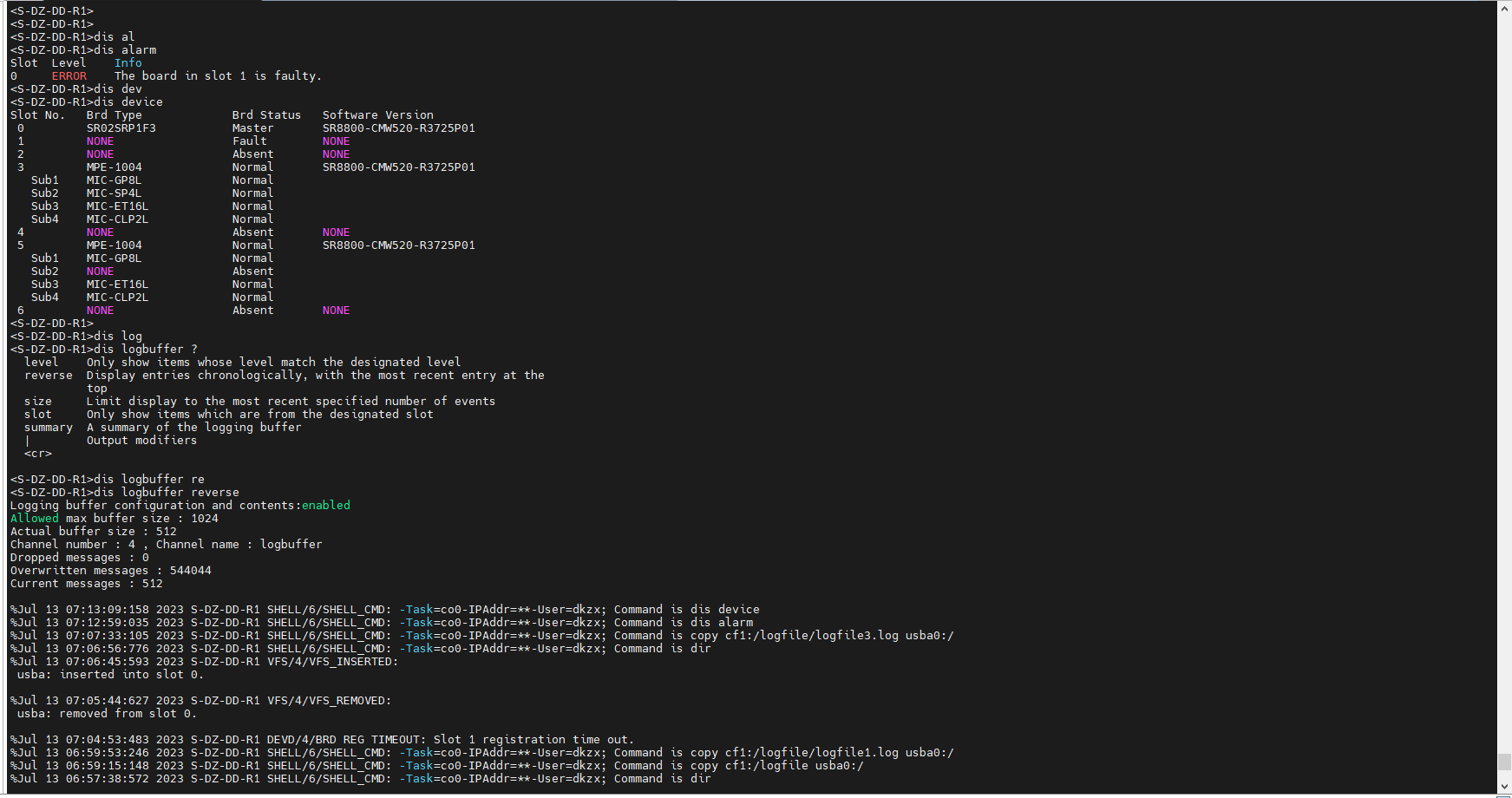 路由器SR8800主控板备板出现slot 1 registration time out注册失败要怎样处理