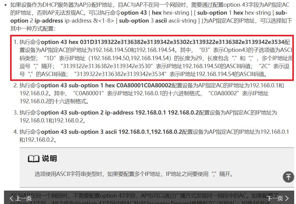 当给华三的核心交换机的DHCP服务器配置了option43后,ap始终注册不上,但是如果换成华为的核心交换机,ap就能正常注册。下面是两个核心的配置,请各位大神看看,华三的核心是不是option43的配置做错了 还说模式选错了。