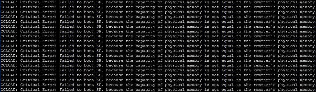 CCLOAD: Critical Error: Failed to boot SP, because the capacity of physical memory is not equal to the remoter's physical memor