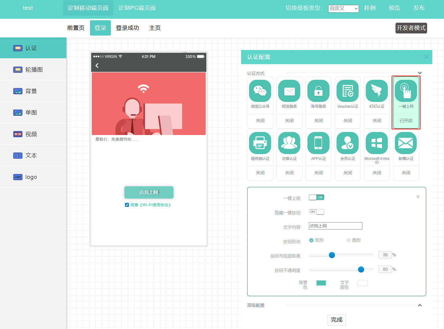 这种不建议配置portal认证,可以配置web认证,或者portal认证给配置一些公共用户帐号