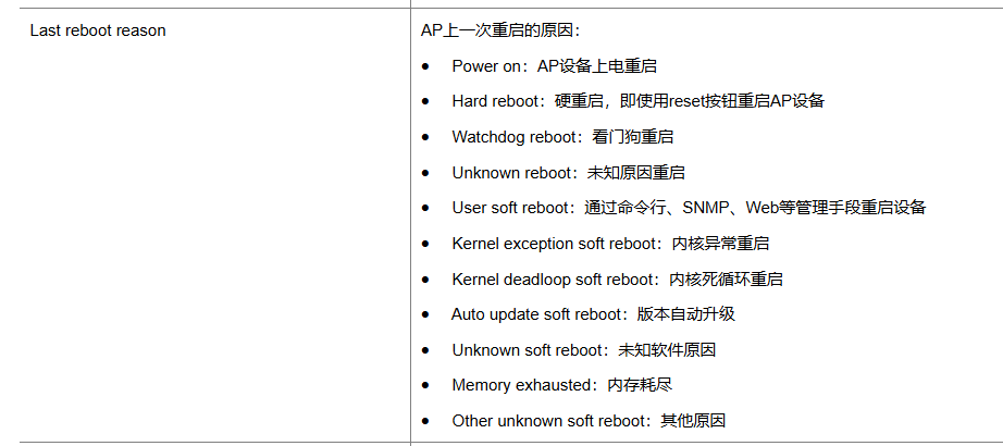 display wlan ap name XXX verbose(XXX是重启过的AP的名字),查一下Last reboot reason是什么。
