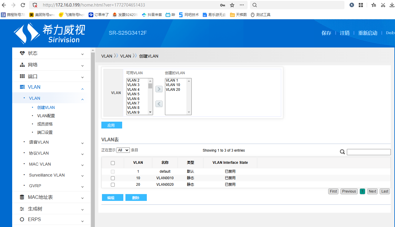 DHCP设置->新建地址池:选VLAN2 启用DHCP服务器(IP地址和DNS自己根据情况填)