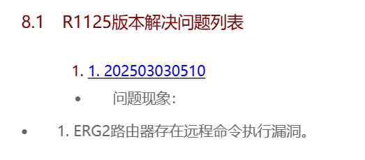 H3C 企业路由器(ERN ERG2N GR 系列》存在任意用户登录和命令 执行漏洞,攻击者可通过访问nserLog in.asp/actionpalicy_status1./xxxx.cfg 接口,xxxx为设备型号(比如设备型号为 ER5200G2 ,即访问userLog in.asp/../actionpolicy_status/../ER5200G2.cfg),统过COOKIE 验证,进行目录穿越,获取 设备的明文配置文件,配置中有明文的web 管理员账号admin 的密码,登陆后台 即可通过开启 telenet 获取命令执行权限 ,想问下有补丁没