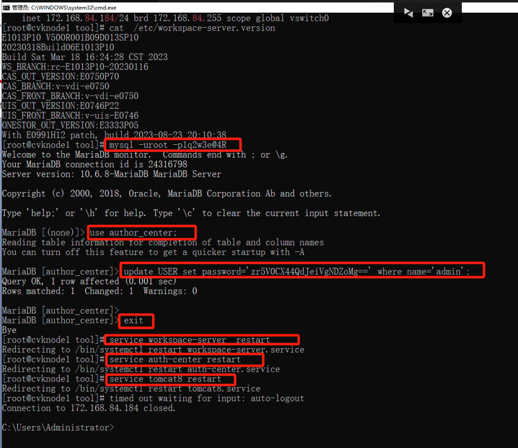 (8) 重启服务:执行service workspace-server restart和service auth-center restart命令来重启相关服务。