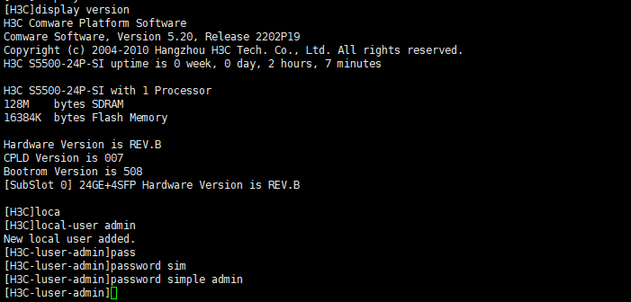 [H3C-luser-admin]service-type ? ftp FTP service type lan-access LAN-ACCESS service type ssh Secure Shell service type telnet TELNET service type terminal TERMINAL service type