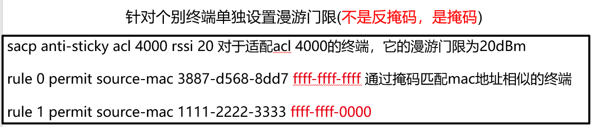 2. 如果对网络有一定的漫游要求,但是不希望终端漫游灵敏度过高,则在AP组的ap-model的radio视图下适当调低sacp anti-sticky enable rssi xxx 的数值(xxx)