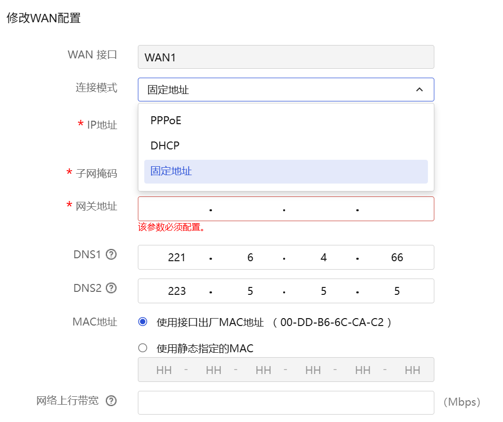 ER3200G3的WAN口接了联通专线,有5个固定IP然后路由器的接口如图所示,只能填一个地址。