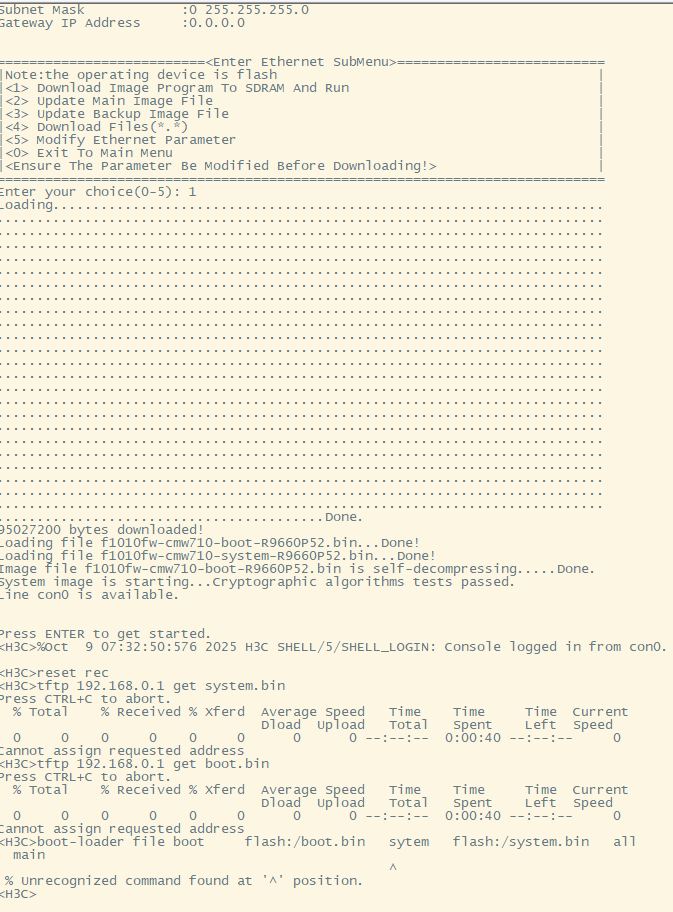 Protocol (FTP or TFTP) : TFTP(不管看的是什么,直接输入TFTP,然后回车)