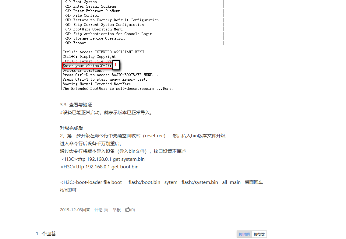 #选择<0> 返回上级菜单后,再选择<0> 重启设备。