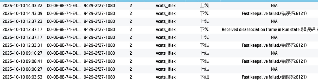 无线设备(AC 与 AP、或者 AP 与 AP)之间的快速心跳(Fast Keepalive)检测失败,表示控制隧道或数据链路在短时间内中断或丢包。