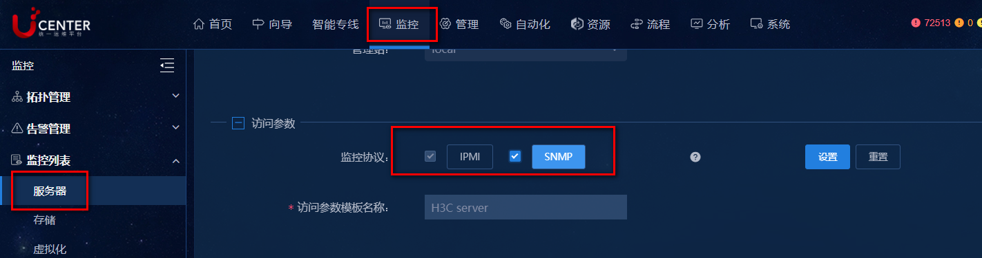 检查U-Center2.0添加服务器时的访问参数只配置了IPMI参数,未勾选SNMP。