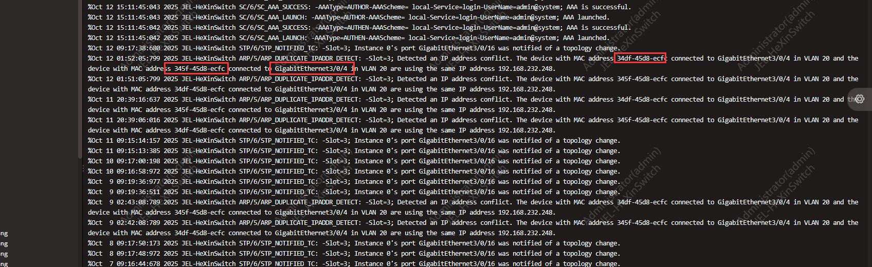 7606交换机日志日志  IP 冲突,但在下联交换机  并没有发现这个MAC 地址, 保险起见我在下联交换机手动 拉黑了这个MAC地址,又在7606上也拉黑了这个MAC地址,但是还是收到这个IP 冲突的日志。