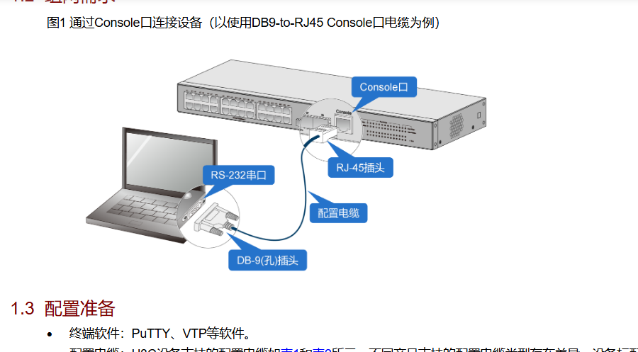 参考案例 图1 通过Console口连接设备(以使用DB9-to-RJ45 Console口电缆为例)