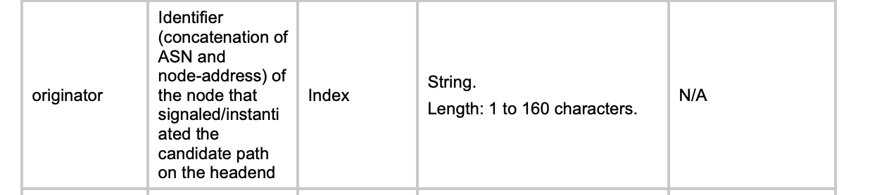 大佬们,求教一个问题?ietf-sr-policy/policies/candidate-paths这个path下面采集的originator也是包括originator-asn和originator-addr的,他们好像都写在同一个数据里面了,这个的格式是什么样的呢?