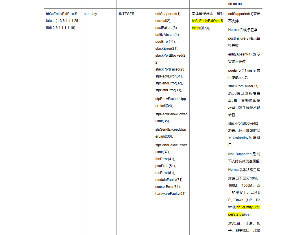 )来管理所有这些实体的状态,并通过最后的索引号来区分不同的实体。因此,您的任务不是寻找一个新的 OID,而是从 hh3cEntityExtErrorStatus