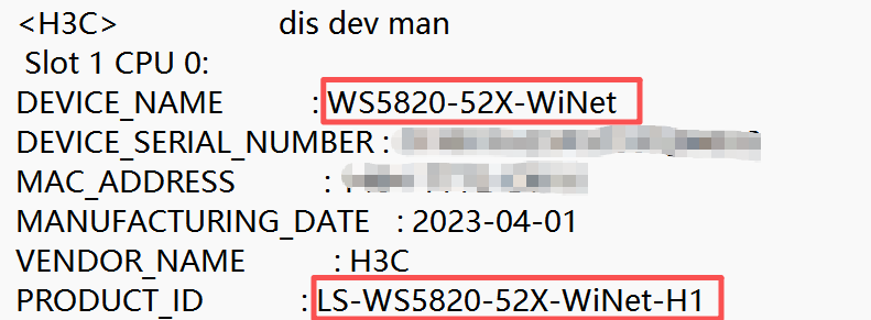 dis dev man 输出的第一个是产品型号,后面的是产品代码
