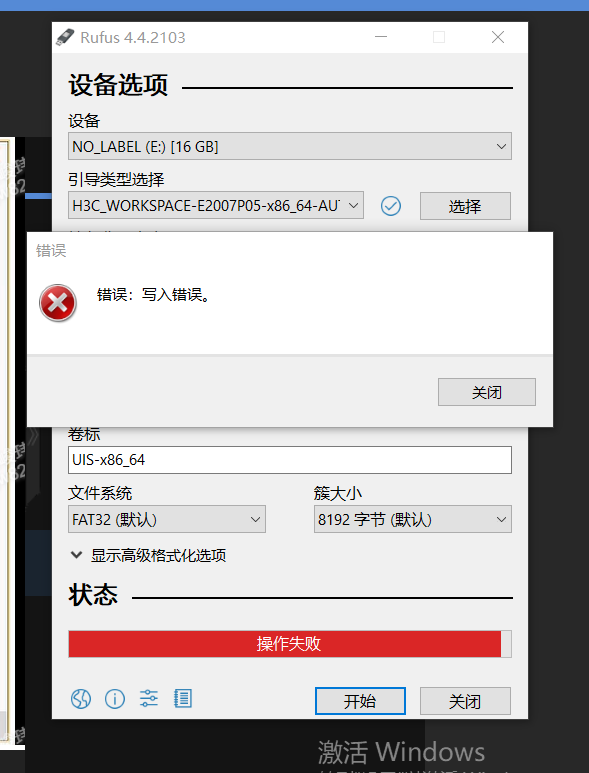 workspace 欧拉版本镜像大小14.8G, U盘16G ,按理说应该正好足够的,而且开始时也没报错说u盘容量不够,但是进度条跑完以后就报错写入失败了