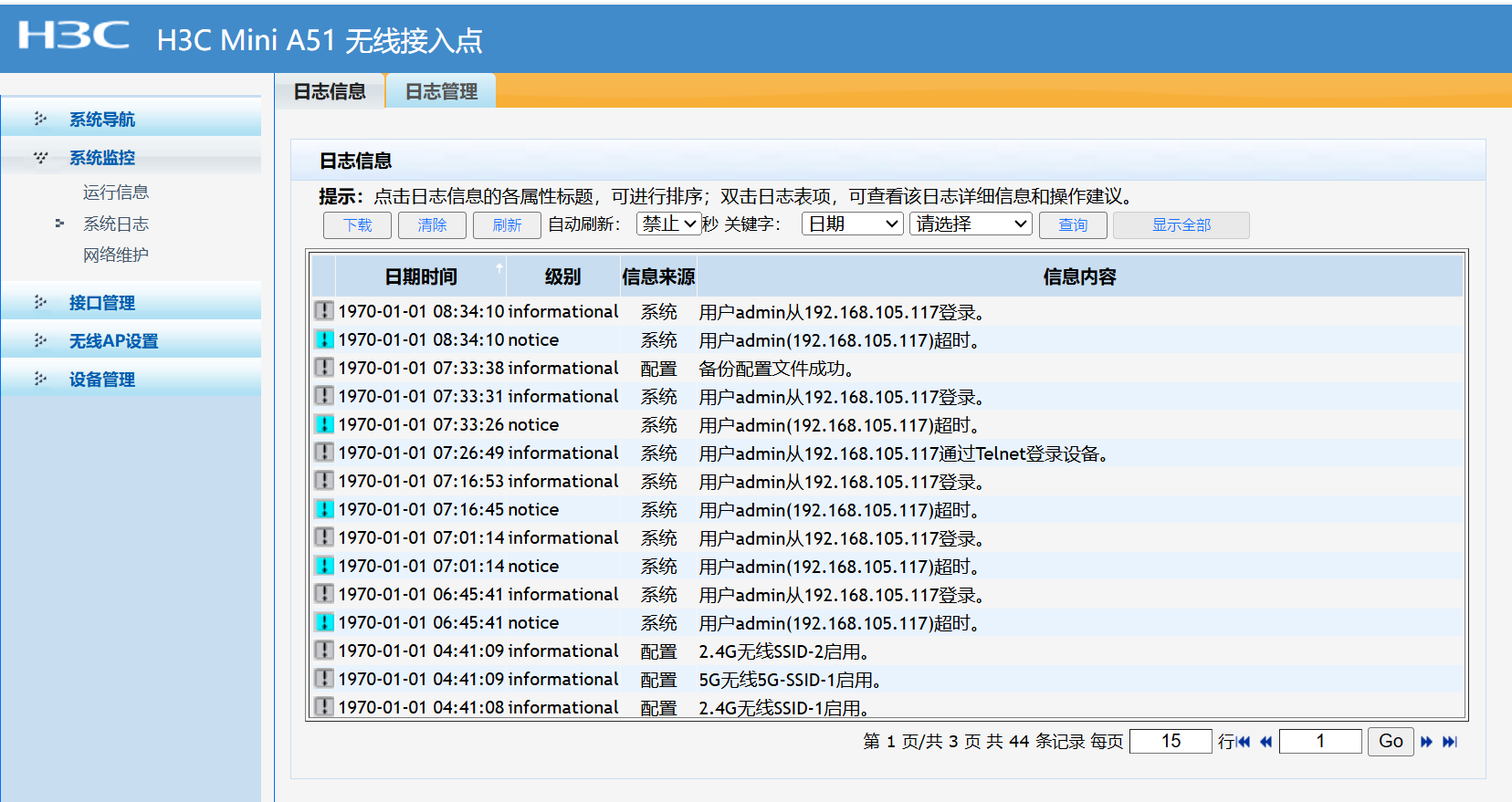 ER8300G2带了几台mini和几台A51、A61,mini一直有断连现象发生,检查日志发现时间为1970年,且设备管理没有时间相关设置选项,ap版本为MiniA51V100R005,8300G2版本为ERHMG2-MNW100-R1126。A51与A61日志时间是正常的,为何mini无法同步到设备的时间呢,求指导。