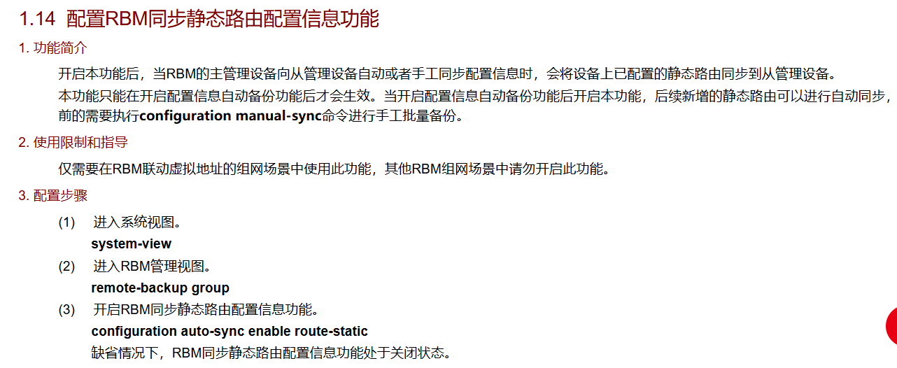 查看到有configuration auto-sync enable route-static命令开启同步,但是这个命令实际在设备上不生效