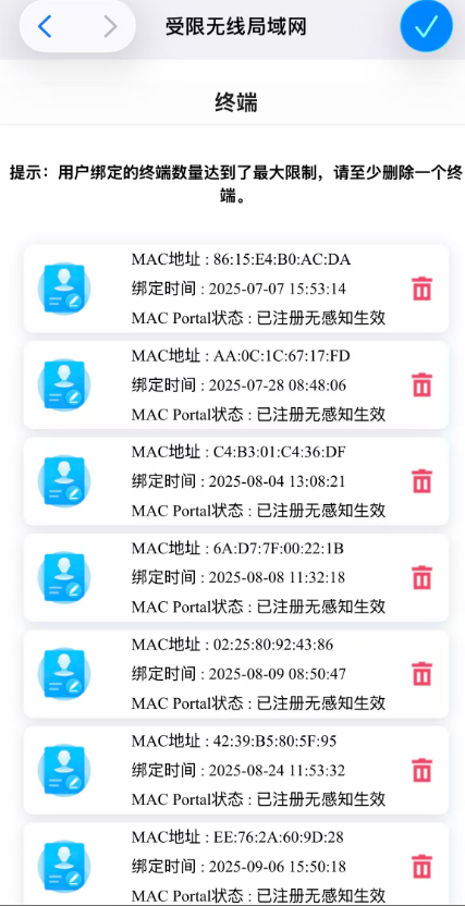 终端无线认证无感知用户达到上限,弹出一个Portal,用户手动删除无效,这个需要怎么调试?麻烦懂的人答复一下,谢谢!