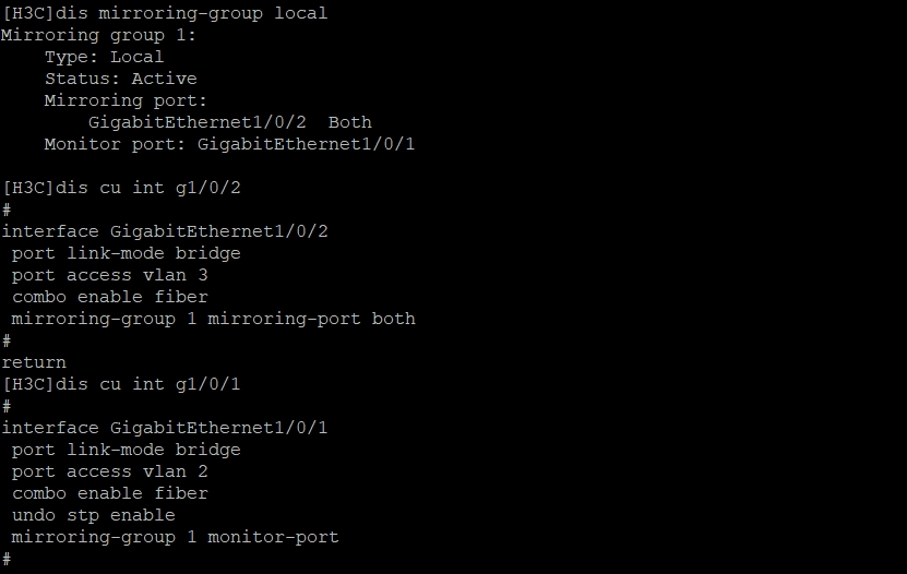 [Device] mirroring-group 1 monitor-port gigabitethernet 1/0/3
