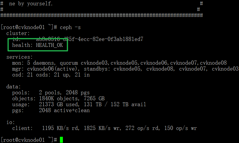 4、登录到正常的其他节点,ceph -s检查UIS存储集群状态为health_ok即可。