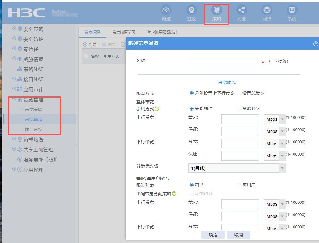 [F100-M-G-GigabitEthernet0/1] qos apply policy PCDN_LIMIT outbound  # 出口方向限制上行流量