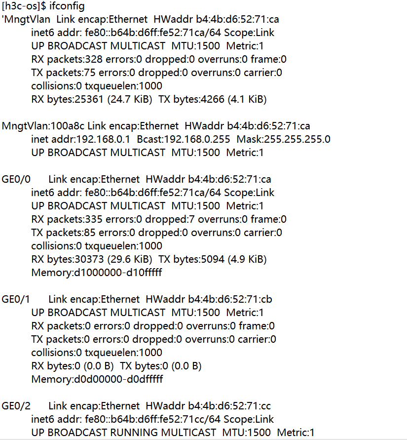 使用笔记本连接上CONSER以后  登陆进去 输入 IFCONFIG 出现如下界面 。